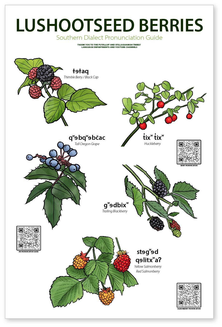 Puget Sound Native Language “Lushootseed” Berries Pronunciation Guide Poster